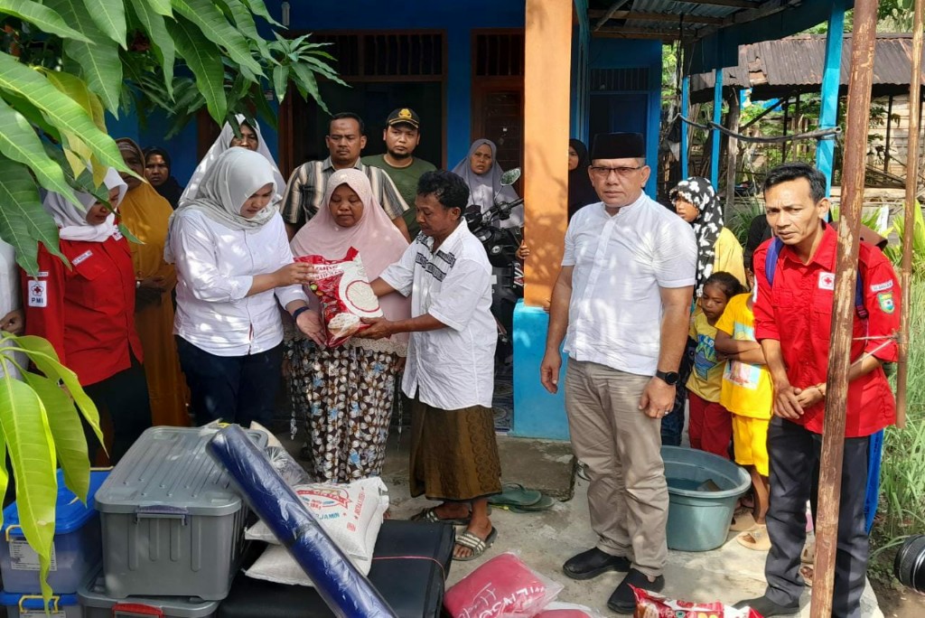 Atika datang bersama rombongan OPD seperti Kepala Badan Nasional Penanggulangan Bencana Daerah (BPBD) Madina, Kadis Kesehatan dan juga barisan Palang Merah Indonesia (PMI) menyerahkan bantuan tersebut di rumah tetangga Samhardi yang menjadi tempat pengungsiannya sementara.