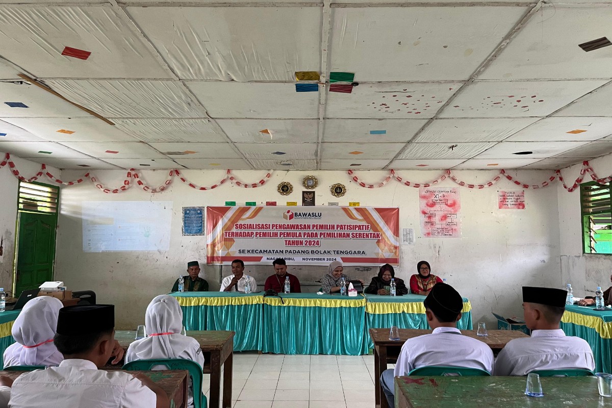 PALUTA – Bawaslu Kabupaten Padang Lawas Utara (Paluta) dan Panwas Kecamatan Padang Bolak Tenggara menggelar Sosialisasi Pengawasan Pemilih Partisipasif Pemilih Pemula pada Pemilihan Serentak 2024 di desa Nagasaribu Kecamatan Padang Bolak Tenggara, rabu (6/11/2024).
