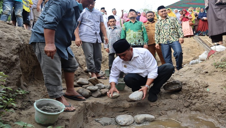 BUKIT MALINTANG, – Bupati Mandailing Natal (Madina) H. Muhammad Ja’far Sukhairi Nasution menghadiri peletakan batu pertama pembangunan masjid taqwa Muhammadiyah ranting Desa Malintang Kecamatan Bukit Malintang, Jumat (5/11/2021)