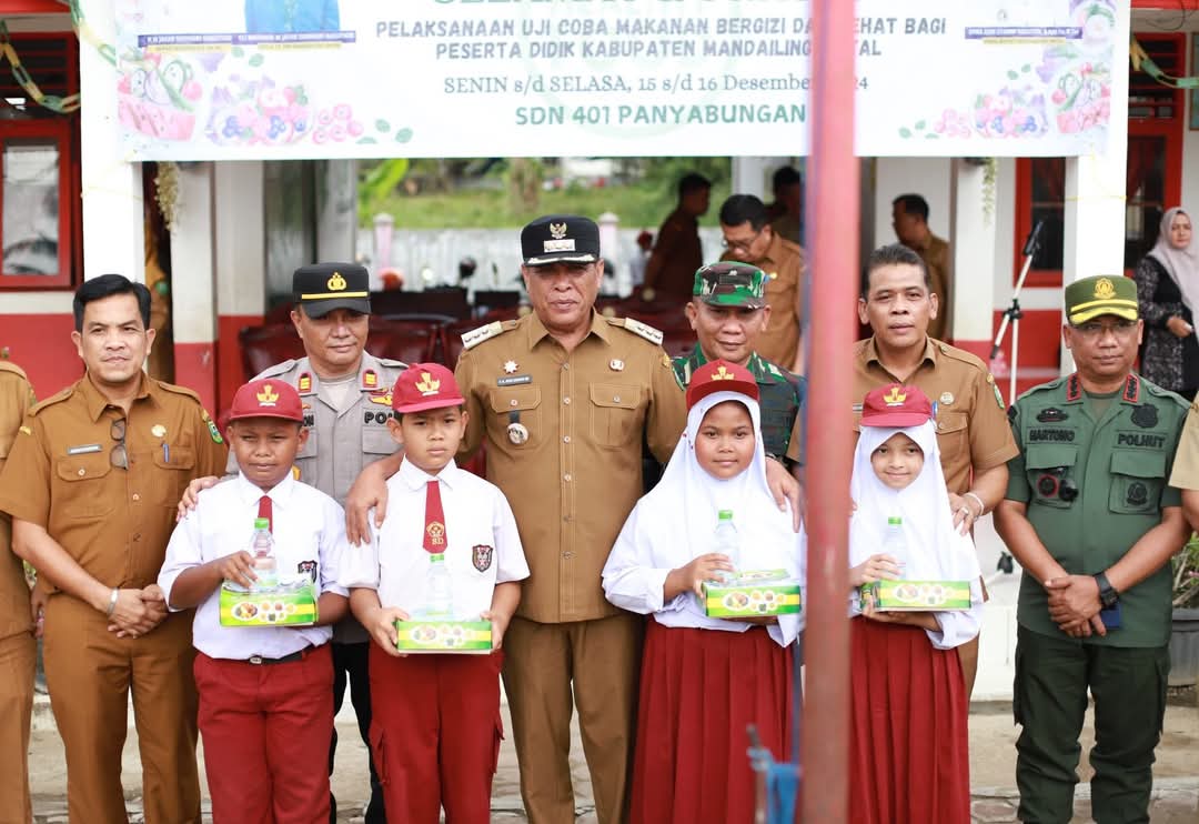 Pemkab Madina dan Forum Kordinasi Pimpinan Daerah (Forkopimda) telah melakukan uji coba makanan bergizi gratis bagi pelajar. Pembagian makanan bergizi ini menyasar 767 siswa diantaranya 300 siswa SD dan 437 siswa SMP.