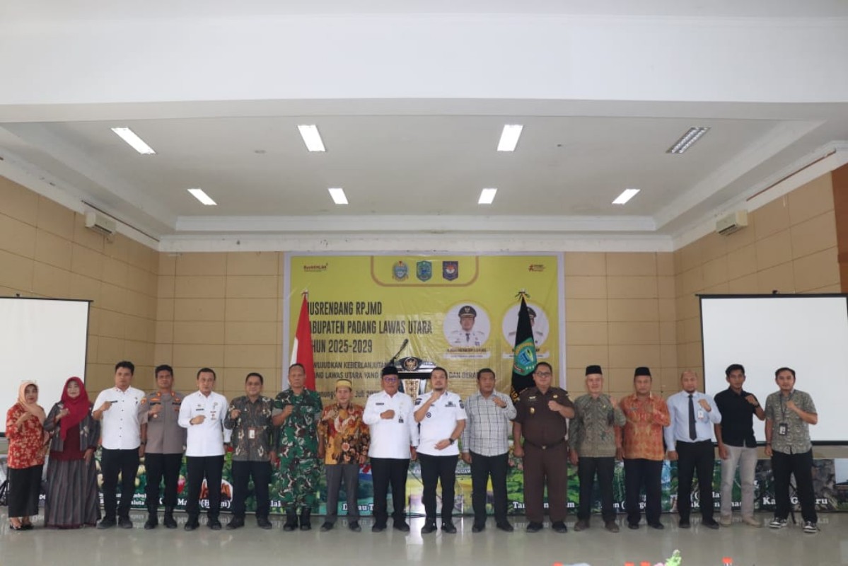 PALUTA – Bupati Padang Lawas Utara H. Reski Basyah Harahap, S.STP., M.Si Membuka Kegiatan Musrenbang RPJMD Kabupaten Padang Lawas Utara Tahun 2025-2029 di Aula Gedung Serbaguna Kantor Bupati, Rabu (30/07/2025).