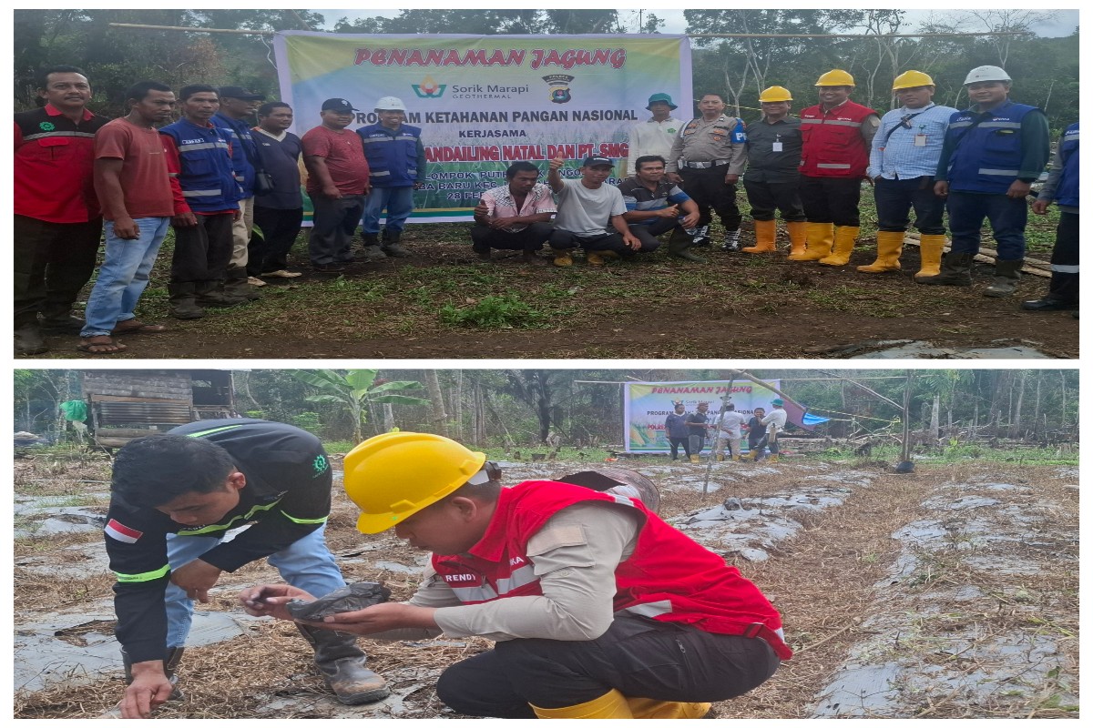 MADINA – PT Sorik Marapi Geothermal Power (SMGP) bekerja sama dengan Polres Mandailing Natal (Madina) mengadakan kegiatan tanam jagung dalam rangka mendukung program ketahanan pangan nasional, di Desa Purba Baru Kecamatan Lembah Sorik Marapi, Jumat (28/2/2025)