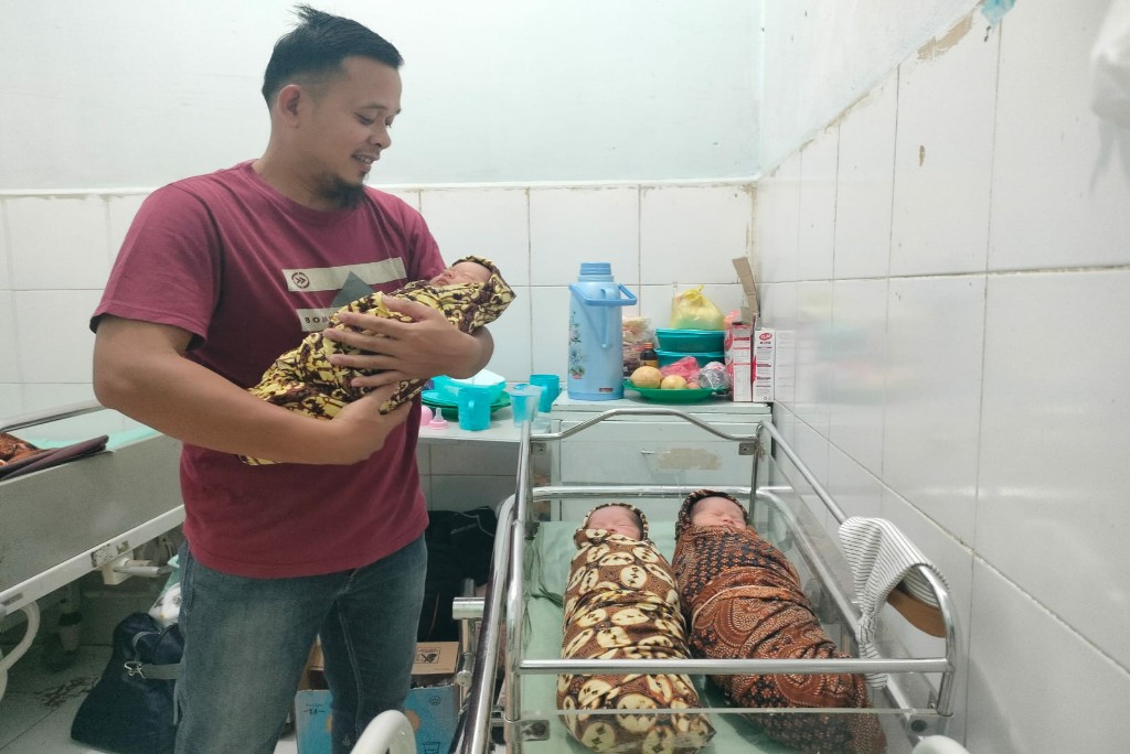 “Tak pernah membayangkan punya anak tiga kembar sekaligus, waktu itu saya bawa istri ke klinik dokter Ebta, di situlah kami tahu janin yang ada di dalam kandungan istriku kembar tiga,” jelasnya.