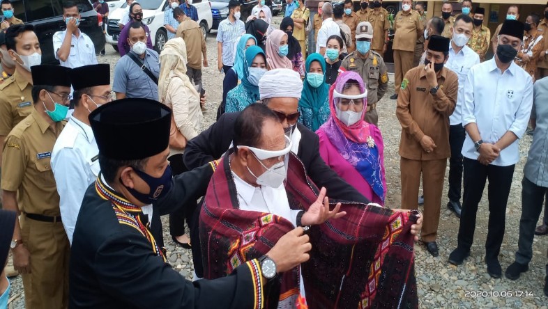 MohgaNewsIPanyabungan – Gubernur Sumatera Utara (Sumut) Edy Rahmayadi didamping Pimpinan OPD Sumut berkunjung ke tempat isolasi terdampak Corona Virus Disease (Covid-19) di Bagas Godang Saba Purba Desa Purba Baru Kecamatan Lembah Sorik Marapi Mandailing Natal (Madina), Selasa (6/10/2020).