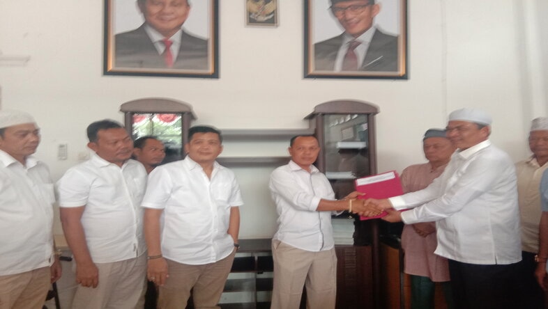 Rombongan Aswin Parinduri diterima langsung Ketua DPC Gerindra Madina Erwin Efendi Lubis dan Ketua Penjaringan Calon Bupati Madina Sutan Nasution serta jajaran pengurus lainnya.