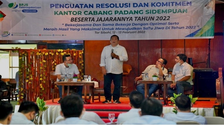 Acara penguatan resolusi dan komitmen 2022 diikuti oleh KCP se-Padang Sidempuan Raya. Ditandai penandatangan komitmen oleh Pimpinan BPJS Ketanaga Kerjaan.