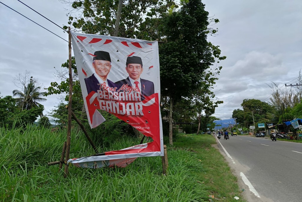“Ke depan Indonesia harus dipimpin oleh Presiden yang dapat melanjutkan pembangunan, meneruskan perjuangan. GANJAR PRANOWO adalah calon presiden terbaik yang kita punya saat ini,” isi tulisan baliho tersebut.