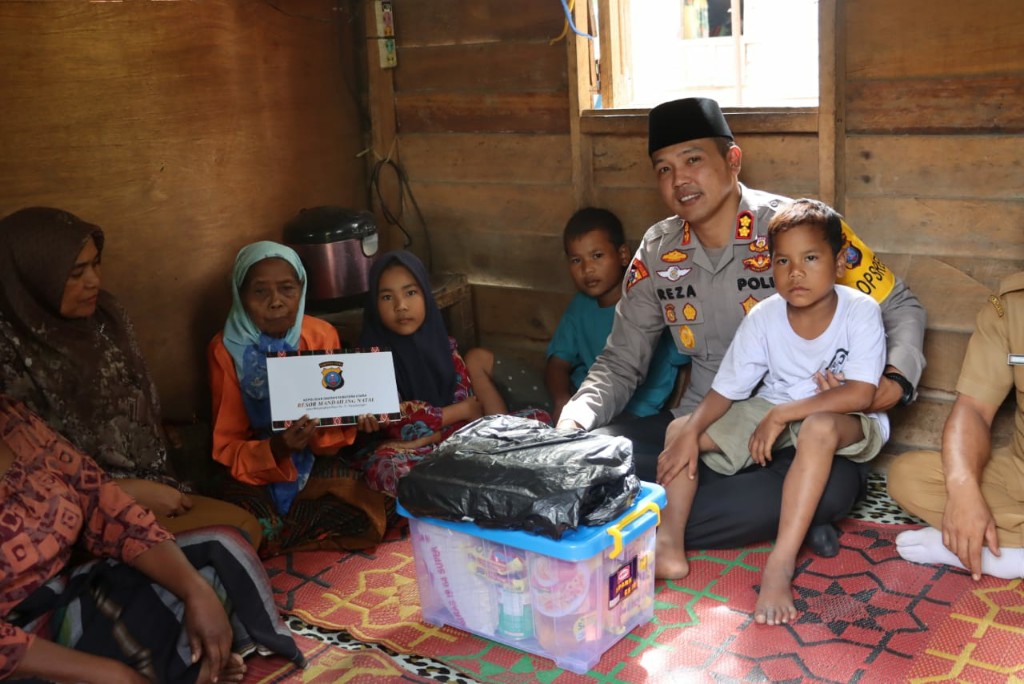 MADINA, Mohga – Kapolres Mandailing Natal (Madina) AKBP H Muhammad Reza Chairul Akbar Sidiq Sik MH membantu 3 orang yatim piatu yang tinggal bersama neneknya bernama Ana di Kelurahan Longat Kecamatan Panyabungan Barat, Jum’at (24/6/2022).