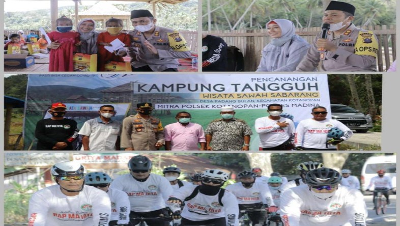 Kotanopan| Kapolres Mandailing Natal (Madina) AKBP Horas Tua Silalahi SIK MSi bersama Pejabat Utama Polres dan Polsek Kotanopan melakukan gowes naik sepeda sejauh 45 Km dimulai dari Kota Panyabungan sampai ke Desa Wisata Saba Sabarang Desa Padang Bulan Kecamatan Konopan, Sabtu (27/2/2021)
