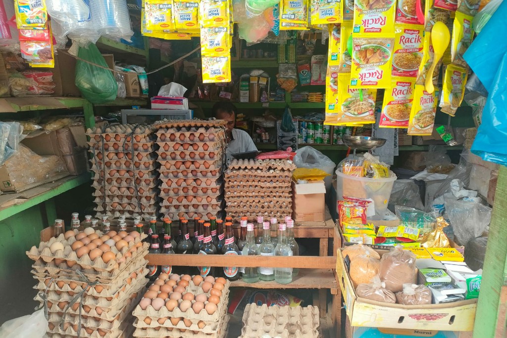 Zul menyebut harga barang dagangannya seperti telur sampai hari ini menurun dari Rp 54 ribu per papan menjadi Rp 52 ribu per papan.