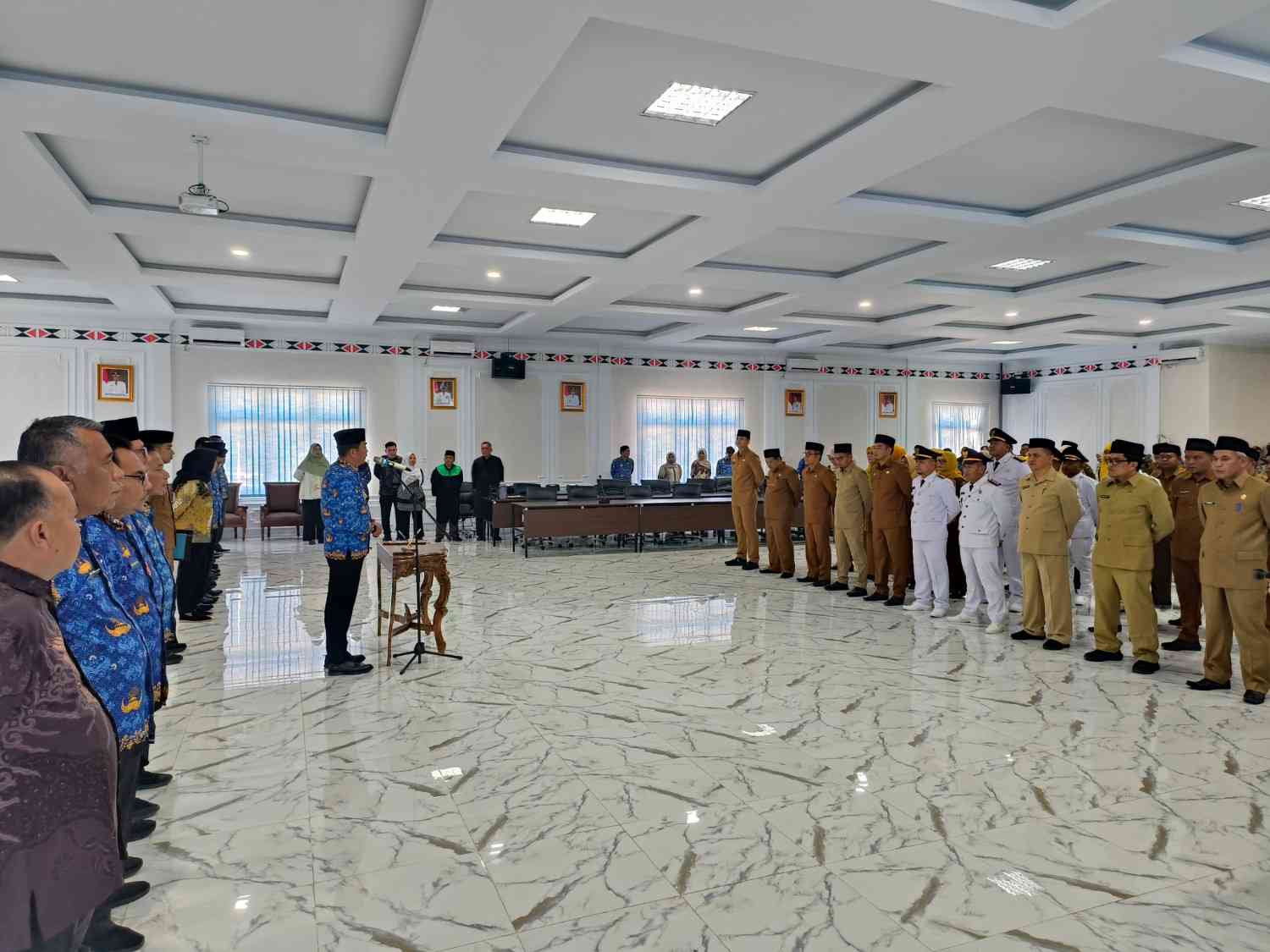 “Kami, Bupati dan Wakil Bupati, mengucapkan selamat kepada saudara-saudara yang baru saja dilantik di jabatan yang baru. Mudah-mudahan saudara semua bisa melaksanakan tugas seperti yang saudara telah ucapkan dalam sumpah,” kata Bupati.