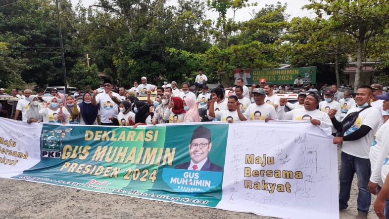 PANYABUNGAN, – masyarakat Mandailing Natal (Madina) dari berbagai komunitas deklarasi dukungan kepada H. Muhaimin Iskandar sebagai Calon Presiden RI tahun 2024, Minggu (13/2/2022) di aula hotel Rindang Kelurahan Dalan Lidang, Panyabungan.