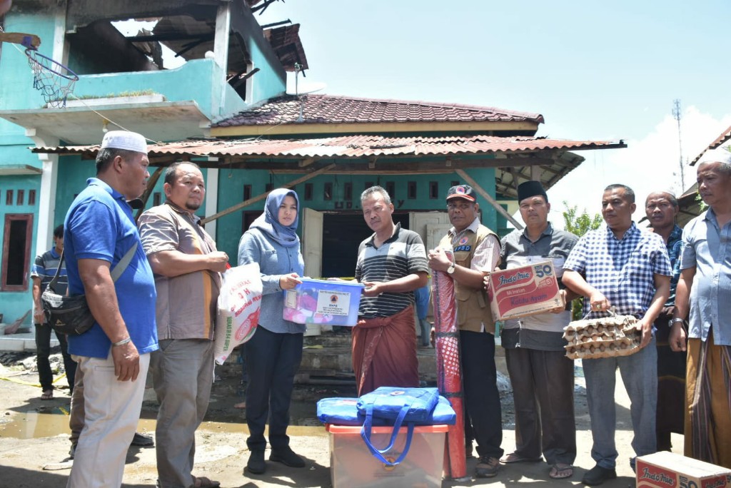 Dalam penyerahan bantuan, wakil bupati didampingi Kepala Dinas Sosial Dedi Armansyah, Kepala BPBD Edi Sahlan dan unsur muspika kecamatan setempat