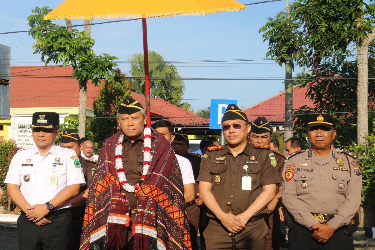 PALUTA – Penjabat Bupati Padang Lawas Utara, Patuan Rahmat, S.STP, MM., bersama Kepala Kejaksaan Negeri Padang Lawas Utara, Dr. Hartam Ediyanto, SH., M.Hum., sambut Kunjungan Kerja Kepala Kejaksaan Tinggi Sumatera Utara, Idianto, SH MH di Kantor Kejaksaan Negeri Padang Lawas Utara, rabu (12/6/2024).