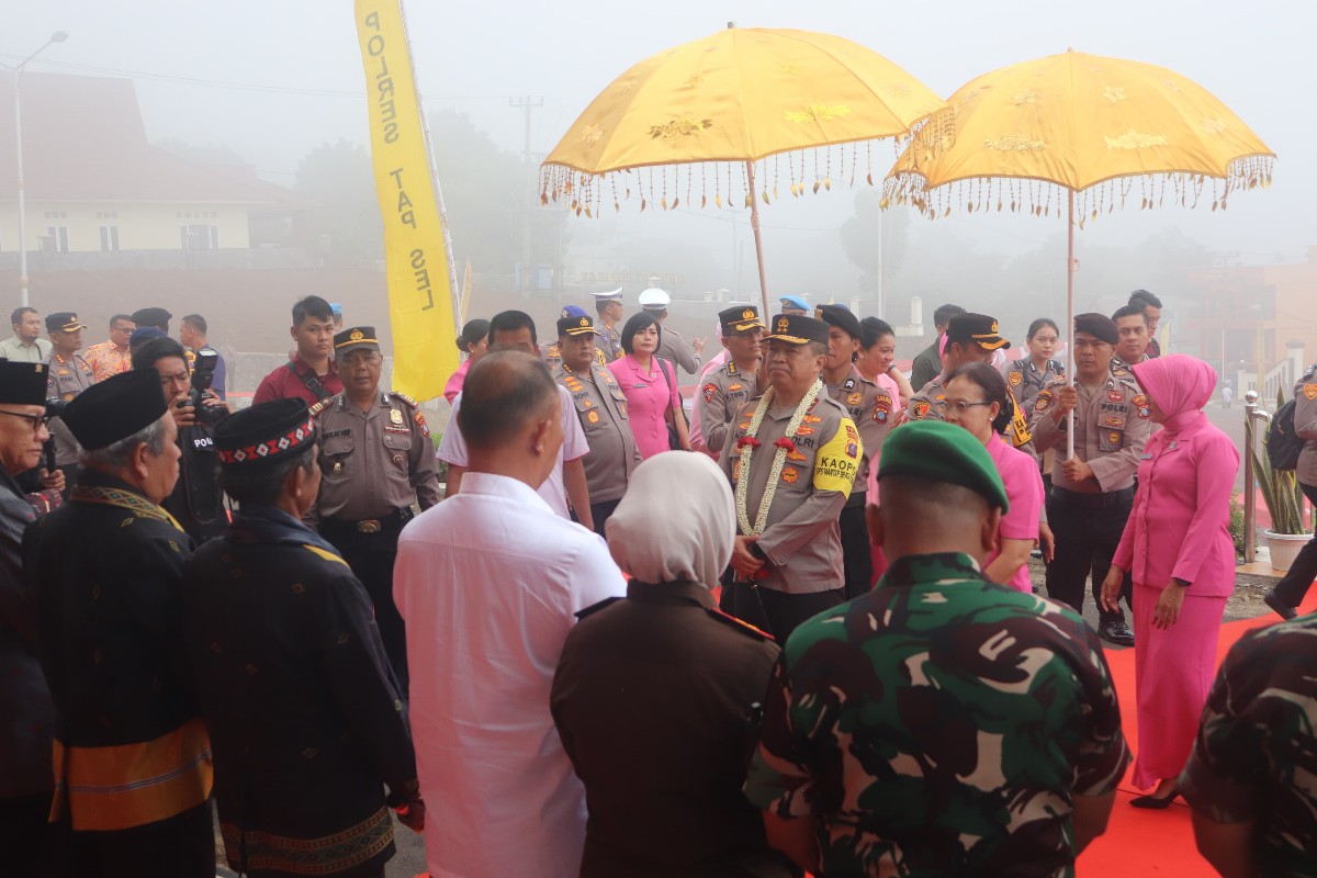 Kedatangan Kapolda Sumut bersama sejumlah Pejabat Utama Polda Sumut turut disambut Kapolres Tapanuli Selatan, Bupati Tapsel, Dandim 0212/TS, Kajari, Tokoh Masyarakat dan Pemuda serta seluruh personel jajaran Polres Tapsel.