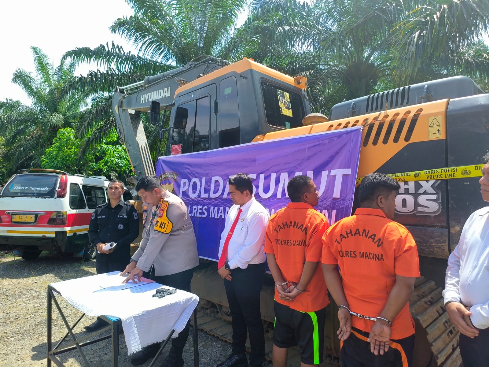 Arie Paloh saat itu menyebut dua pelaku sudah ditetapkan sebagai tersangka. Keduanya, AT alias Buyung Tarigan (41), warga Desa Kampung 4 Mahakarya, Kabupaten Pasaman Barat, dan AF (42), warga Desa Saba Dolok, Kecamatan Kotanopan. AT bertindak sebagai operator excavator, sementara AF sebagai pemodal.