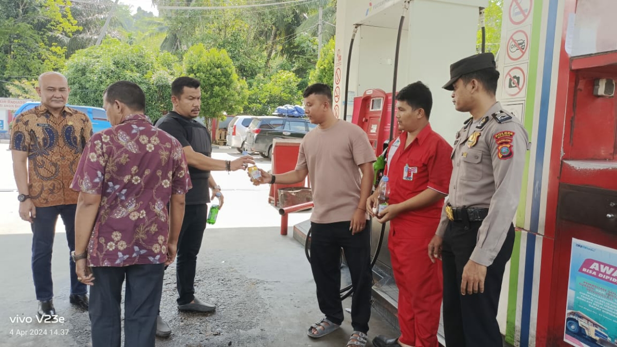 Kegiatan pengambilan sampel BBM dan imbauan bagi petugas SPBU di Madina berlangsung aman dan kondusif. (FAN)