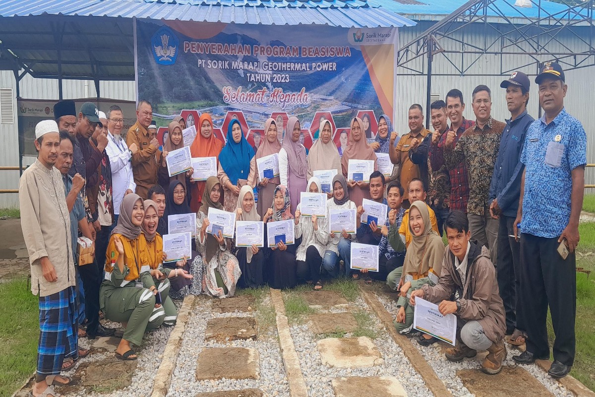 MADINA – PT SMGP (Sorik Marapi Geothermal Power), selaku perusahaan pembangkit listrik tenaga panas bumi di Kabupaten Mandailing Natal (Madina) menyerahkan beasiswa reguler program tahun 2023 kepada 20 orang mahasiswa, Selasa (12/12/2023)