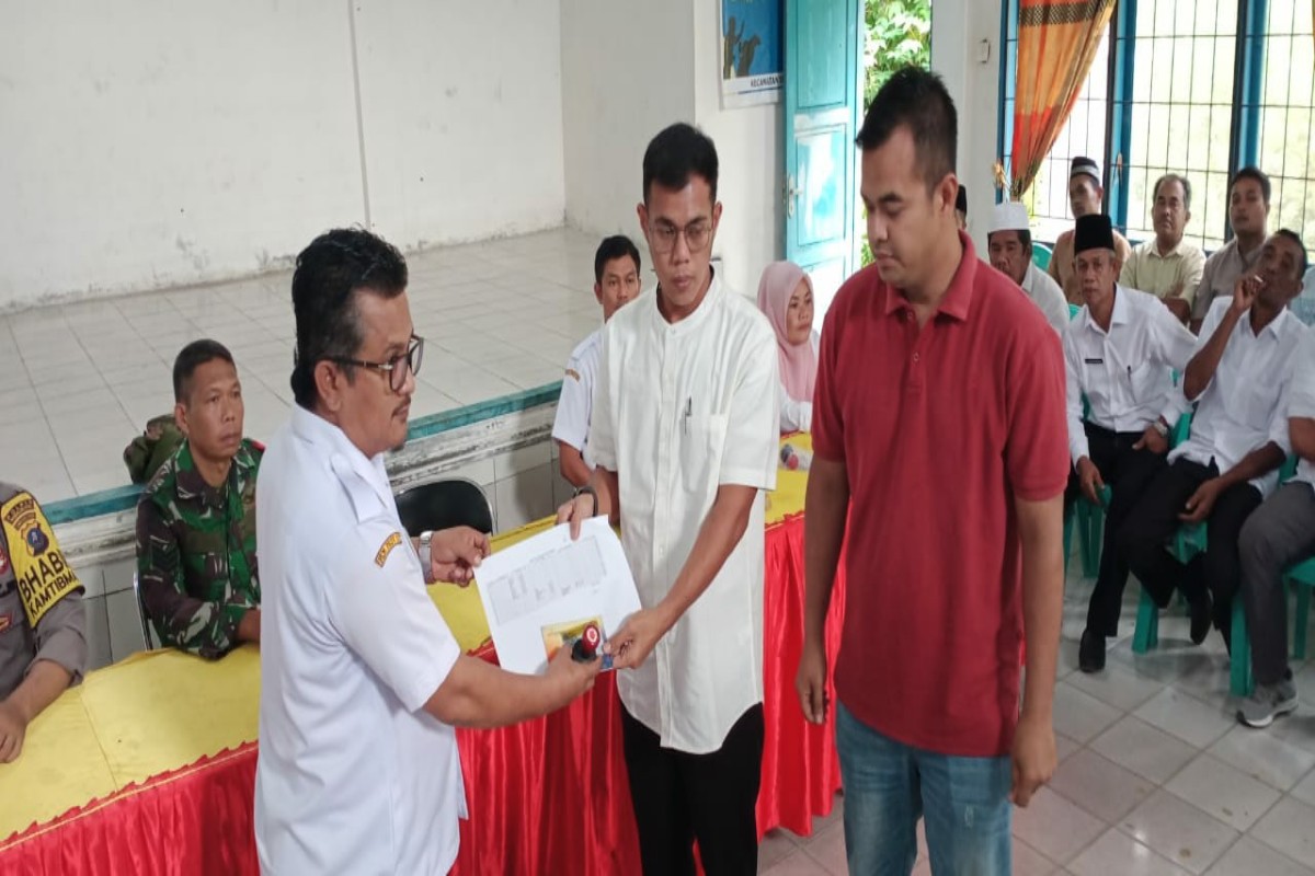 Serah terima jabatan atau sertijab ini berlangsung di aula kantor kecamatan, Rabu (8/11/2023). Disaksikan Camat Tambangan Muslih Lubis beserta forum koordinasi pimpinan kecamatan, dan para BPD masing-masing desa.