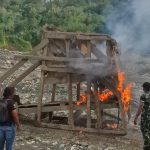 Foto: Personel Kodim Tapsel membakar alat penyaring emas di lokasi PETI di Madina.